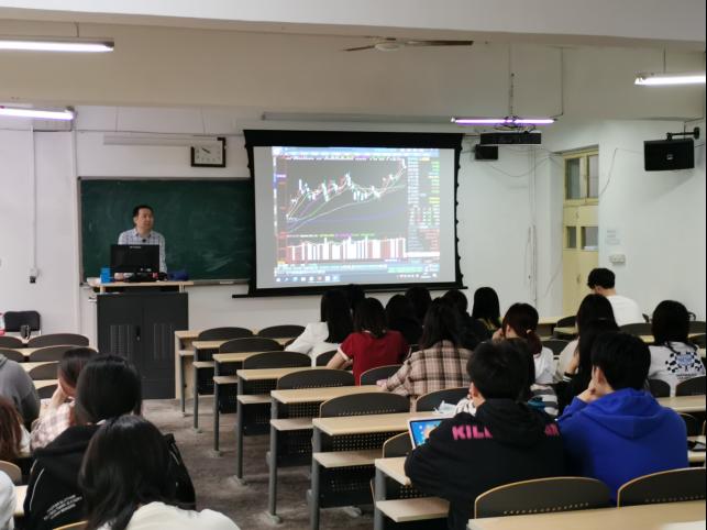 金融专硕校外导师、财达证券研究发展中心韩彦斌总经理,分别为金融专硕研究生和金融学专业本科生授课,授课主题是“股票投资基本面分析”和“股票投资技术分析”。在历时5个小时的授课过程中,韩总结合实战经验,对股票投资技巧进行了生动的讲解,介绍了证券市场的发展历程、资本市场构成和公司架构及经营理念,加深了学生对于资本市场的认识。同时,就金融学专业毕业生就业情况、公司用人理念等问题与同学们进行了互动交流。在座的师生认真聆听了韩总的授课,并积极地进行互动交流,课堂气氛十分活跃。