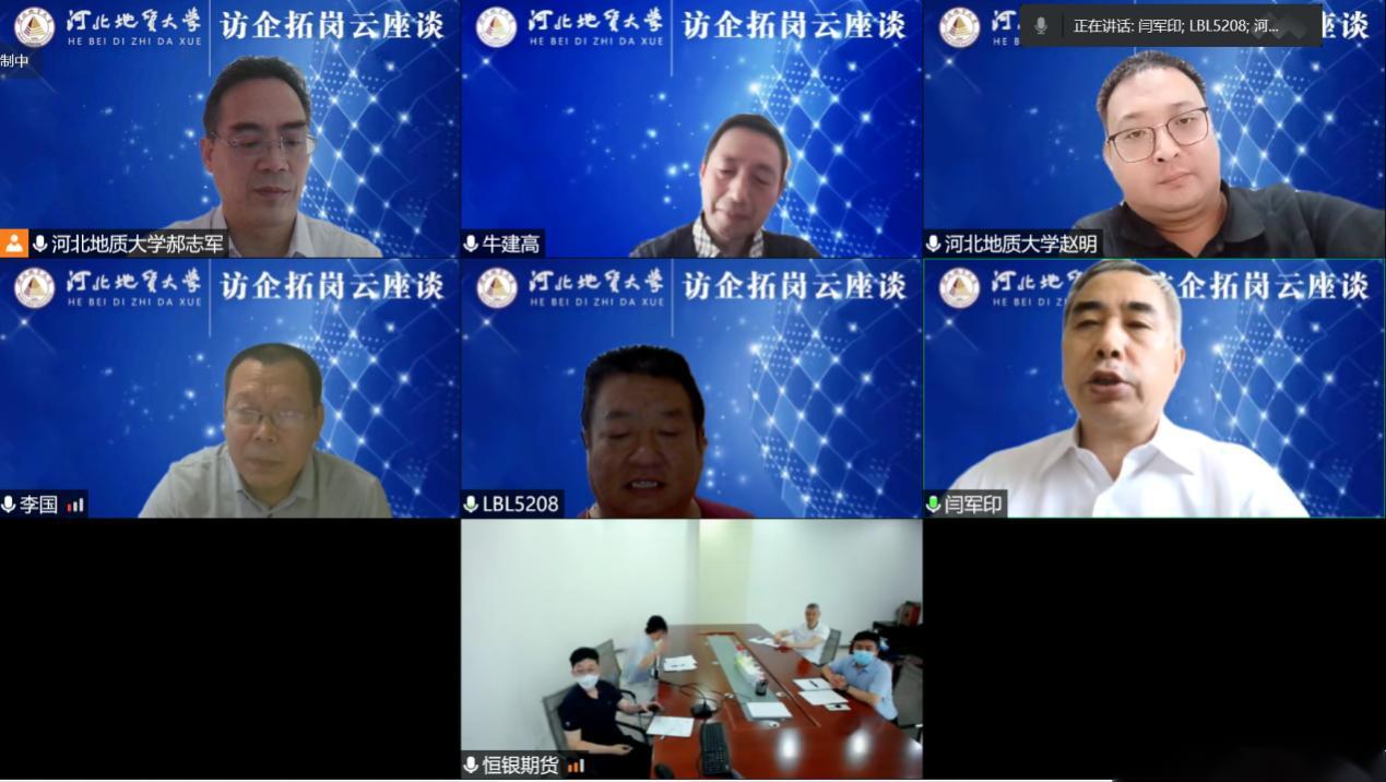 院长牛建高、书记李国柱、副书记赵明和金融学教研室部分教师陪同,通过腾讯会议与恒银期货有限公司的领导班子成员举行了“访企拓岗促就业”专题座谈。