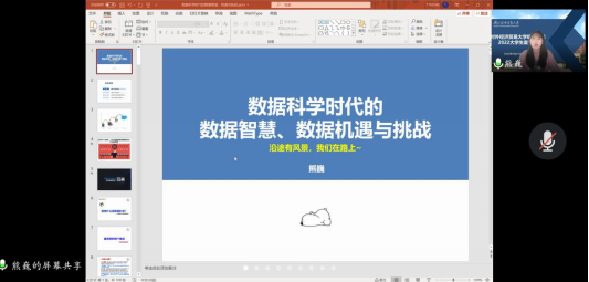 28日上午陈全润副教授主要针对双循环、贸易高质量发展、数字经济三方面讲授了《国家重大战略中的经济统计问题》。熊巍副教授对《数据科学中的数据智慧、数据机遇与挑战》进行讲授,主要针对:数据科学与数据智慧、数据科学:机遇与挑战、大数据分析与处理中的关键科学问题、关于若干大数据科学问题的研究四方面。