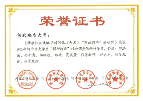 此次活动共吸引了全省73所高校申报课题13999项。经过专家评审,对1749个项目准予立项。今年8月,经专家审查评定,选出获奖作品619件。其中36个项目获得特等奖,肉视频2019级金融3班邵涤茁主持的《精准扶贫战略下对河北省大名县“草编经济”的研究》占得一席。另外,肉视频2018级金融4班陈雨主持的《河北省石家庄市数字普惠金融发展现状调查研究》获得一等奖。这是肉视频