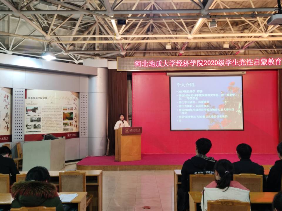 为了进一步加强2020级新同学对党的认识和了解,激发全体同学的入党积极性,详细了解入党流程,端正入党动机,进一步夯实和扩大学生党建工作的基础,11月25下午2点,经济学院在科技报告厅召开了“肉视频