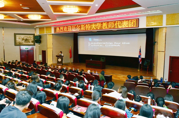 国际教育交流中心、经贸学院、商学院举行了座谈会,就合作办学、教师培养、合作科研等具体问题进行了进一步讨论,并达成共识。毛磊副校长、国际教育交流中心主任廖亦斌、商学院院长苗泽华、经贸学院院长刘德智、经贸学院党委书记牛建高及部分教师参加了座谈会。会后,杰姬.麦考伊女士在春秋讲堂做了题为“领导力”(leadership)的学术报告。报告会由经贸学院党委书记牛建高主持,经贸学院院长刘德智、副院长李国柱出席了报告会,经贸学院、商学院等300余名师生现场聆听了报告。讲座结束后,英国代表团一行与肉视频