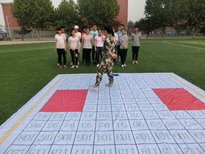 本次素质拓展以班为单位开展活动,设置了“盲人方阵”、“电网”、“驿站传书”等非常具有创意的项目,在拓展训练项目中寻找合作的黄金点,不断形成一种默契,这种关系由原来松散的个体磨合成为一个能够冲破任何防线的组合体。项目之间还加入游戏环节进行适当放松和娱乐,如:“桃花朵朵开”,“大风吹”等游戏。游戏过程中充满了欢声笑语。在9月24日和25日晚,各分队进行团队展示,队员们密切配合,积极参与,通过自己团队独特的形式展现出最完美的团队。