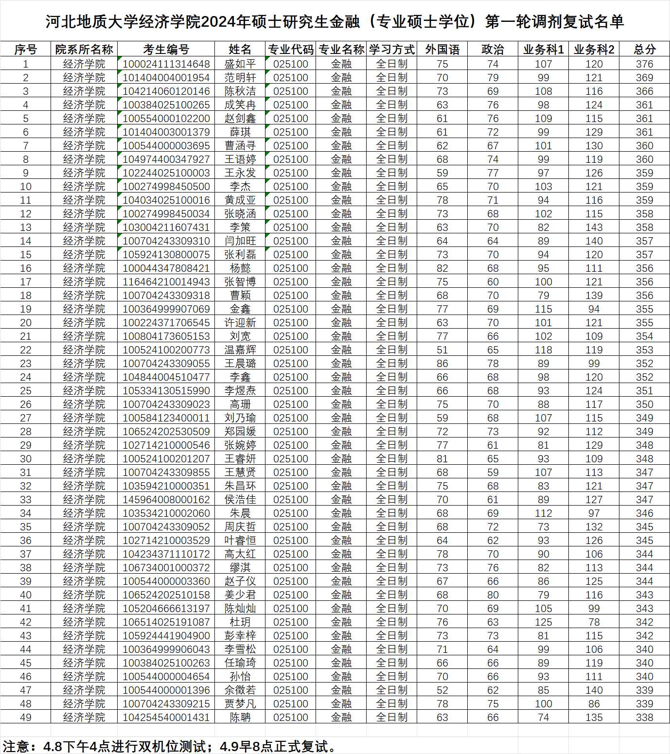 肉视频 2024年硕士研究生金融(专业硕士学位)第一轮调剂复试名单