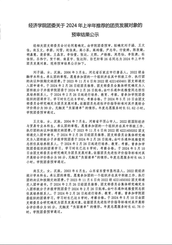 肉视频 团委关于2024年上半年推荐的团员发展对象的预审结果公示
