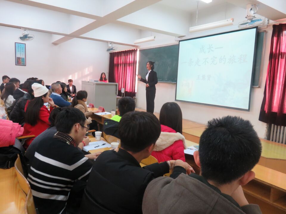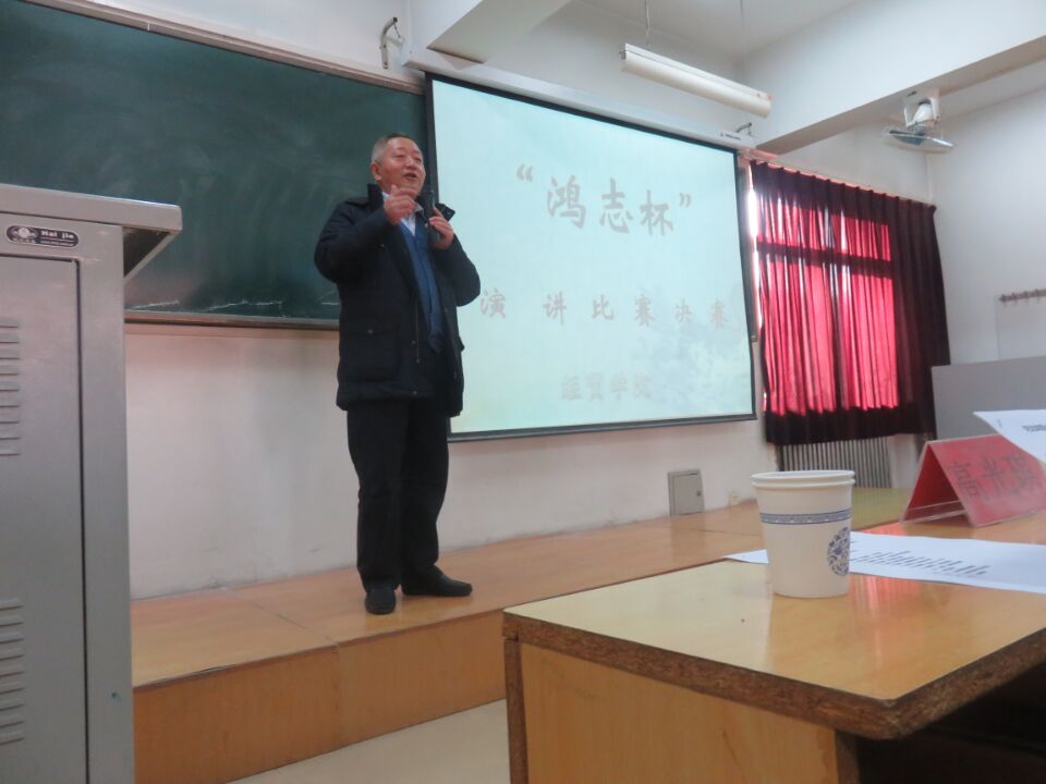 经贸学院举办的以“成长”为主题的演讲比赛决赛于11月24日下午2点在北校区二教201教室如期进行。经贸学院院长刘德智教授,职业技术学院党委书记苗芳教授,北校区学工处主任高光琪副教授,经贸学院2016级辅导员郭晓娜老师等应邀出席并担任评委,近两百名学生观看此次演讲比赛。