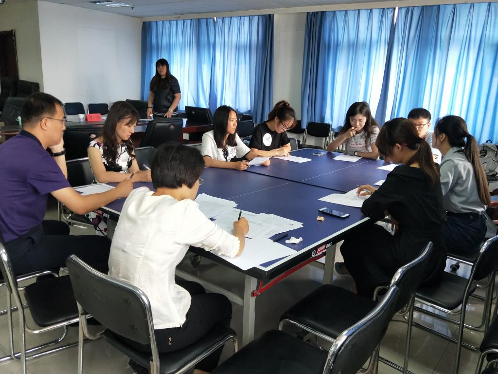 本次换届大会采取公开选拔制度,广招经贸人才,竞聘流程严谨高效。继报名材料筛选、心理测评环节后,今天的面试环节在郭晓娜老师的主持下拉开帷幕。竞聘大会分学生会、团委两组轮流进行。首先,团委主席团竞聘者进行的是无领导小组讨论。每个成员陈述观点,30分钟小组讨论。竞聘者们认真思考,积极讨论,表现出超强的逻辑与表达能力,气氛异常活跃。代表将最终讨论的决策结果予以汇报。此环节考察了团队合作能力以及个人在团队中的角色。与此同时,在808室学生会主席团应聘者在一小时内完成题目为“迎新”的策划书。待学生会也进行了无领导小组讨论后,开始了综合素质面试环节。每位应聘者上台3分钟的个人介绍,并对评委老师尖锐的提问进行回答。在问答环节中,老师、团委、学生会成员对目前工作中存在的问题,团队建设以及解决方案都有了更进一步的思考。