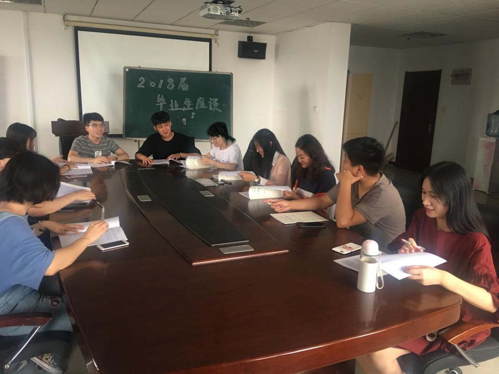 经贸学院学生会2018毕业生座谈会在综合楼806如期召开。参与本次座谈会的有经贸学院学生会2015、2016级主席团成员及2018届学生会优秀毕业生刘威、赵烺、牛一鸣。