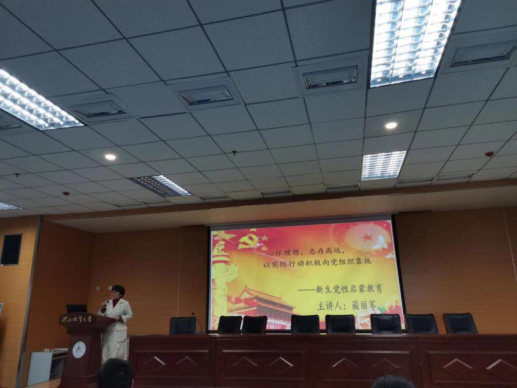 党性启蒙教育是党员教育的基础,是提高大学生政治觉悟,激发学生积极向党组织靠拢的关键环节。为使新生深化对党的认识,端正入党动机,进一步夯实和扩大学生党建工作的基础,2019年10月15日下午两点,经贸学院党委在北校区图书馆401举行“新生党性启蒙教育”党课培训。学生第二党支部书记蔺丽军老师给同学们做了一次内容丰富的入党启蒙教育党课。经贸学院曹丽娜老师、学生党员代表王韦童、积极分子邢芸以及2019级全体新生参加本次党课教育。