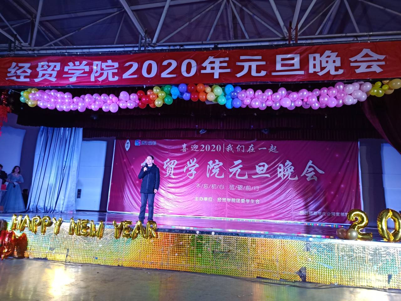 经 贸学 党委书记牛建高教授 在晚会 伊始隆重 随后 2020年元旦晚会在 动感十足 的精美舞蹈中拉开序幕。 2019级经 五班带来的 幽默诙谐的小品 《学班事儿》 逗得大家捧腹大笑; 体育部带来的跳唱串烧《实力这一块》 鼓舞了新生的士气,动感富有创新的歌舞串烧使得现场欢呼阵阵; 对生活保持热情 ,对身边人永远珍惜的rap表演《凡人歌》; 网宣部 别出心裁 的舞台剧《葫芦娃之诸神黄昏》 使全场气氛到达高潮。 回望过去,中国人民团结一心不懈奋斗 展望未来让我们以饱满的热情去拥抱美好的未来 2019 金融学三四班带来的唱跳表演《鼓出激情 歌唱20 20 长路漫漫,无数先辈筚路蓝缕 披荆斩棘为繁荣 昌盛 的新中国 而奋斗 。学习部成员 的舞台剧 《新世界》 告诉我们 从未有什么岁月静好,只是有人为我们负重前行,正是无数前辈为我们带来了这个昌盛的新世界。 最后, 团委学生会部长们靓丽帅气的走秀 中,晚会圆满落幕。