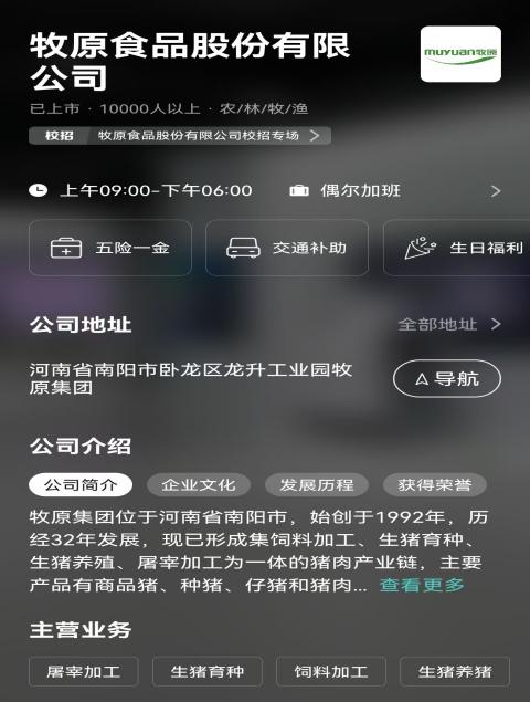 就业推送报告--走进牧原食品股份有限公司