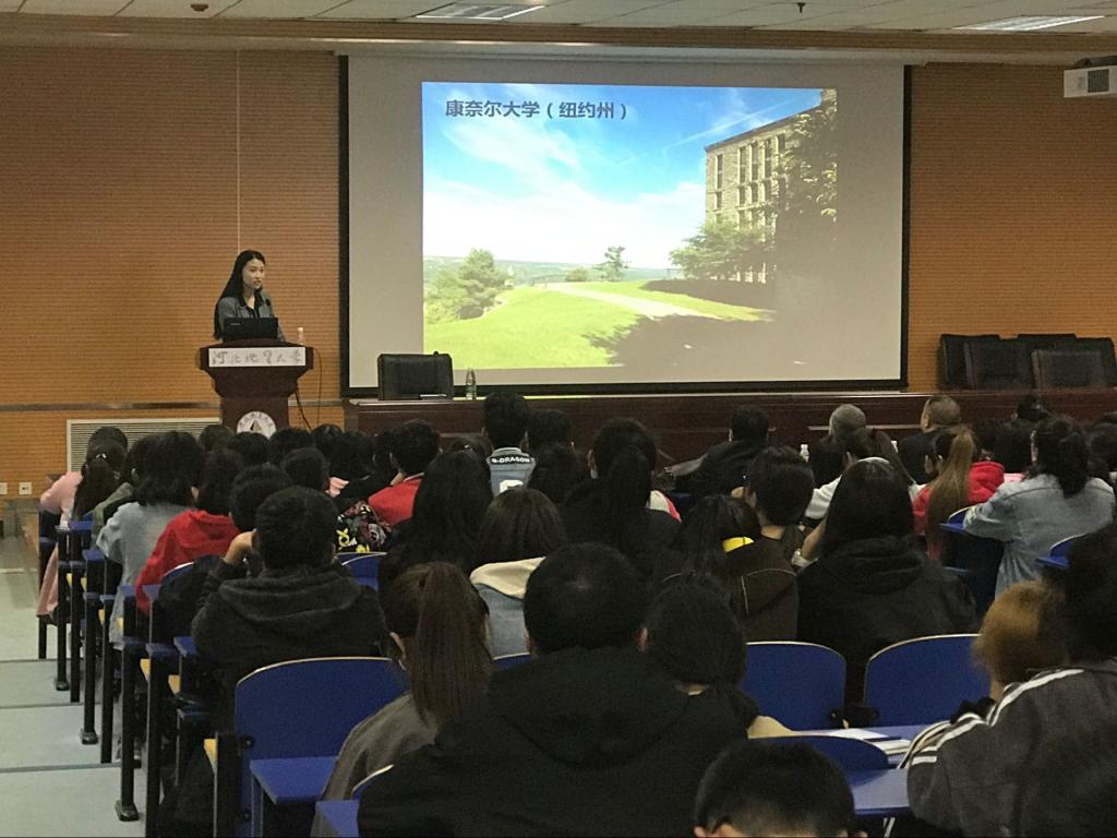 10月24日,经贸学院邀请留美学者谢佳楠女士在北校区图书馆报告厅,以美国康奈尔大学为例,为大一新生作了关于中美教育差异的主题讲座。
