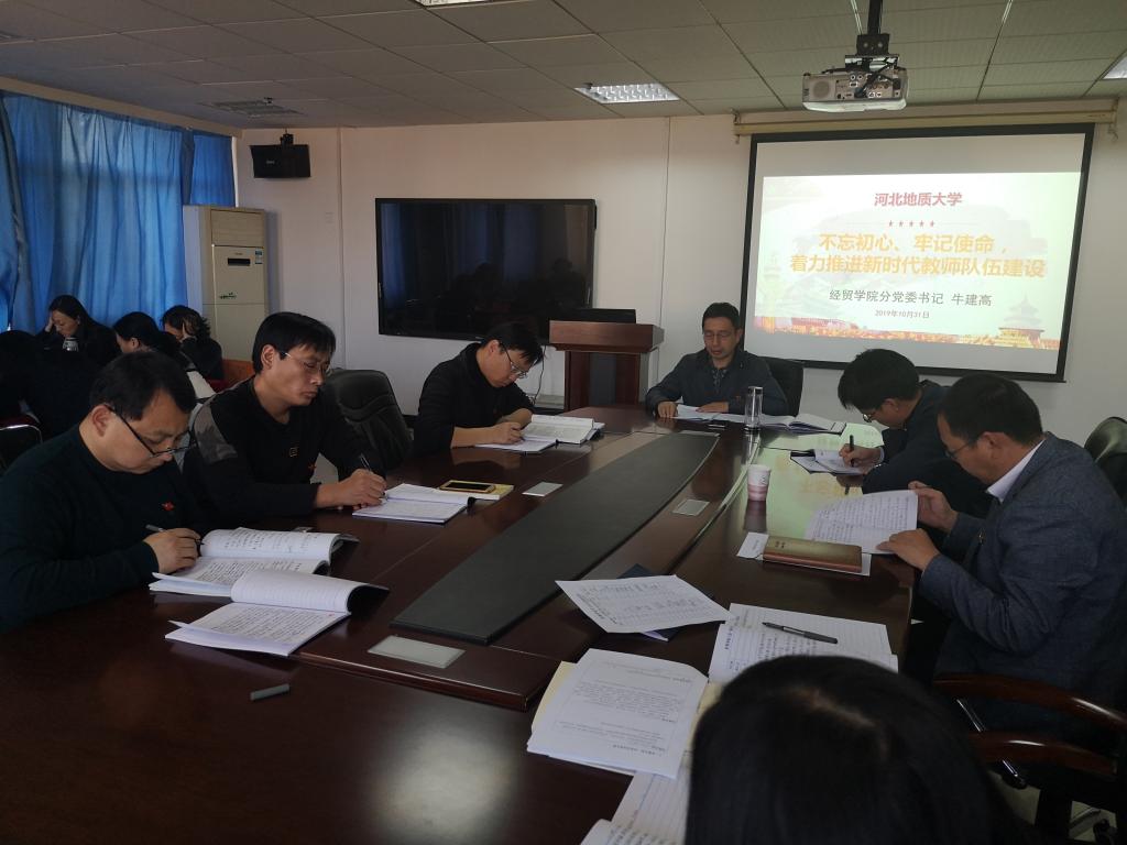 为进一步推进主题教育,根据校党委的安排部署,10月31日下午,在综合楼8楼学术小讲堂,经贸学院党委书记牛建高以“不忘初心、牢记使命,着力推进新时代教师队伍建设”为主题,为全院党员教师讲授了一堂有高度、有深度的专题党课。