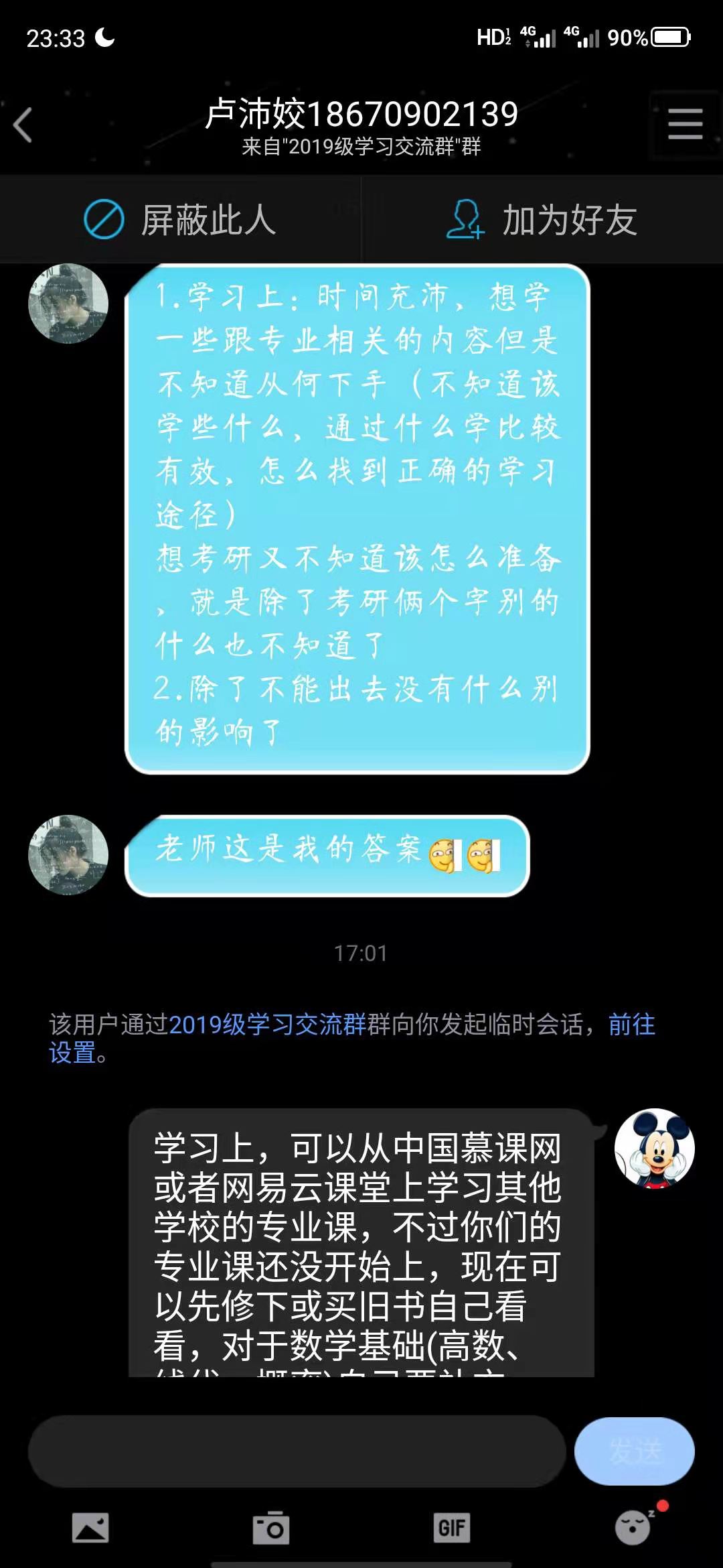 第三,发挥特长,做学生学习的“管理者”。主动联系学生,发挥教师专业特长,帮助大二、大三学生制定科学、合理的假期学习计划,通过网络、新媒体等线上工具为学生答疑解惑,为大四学生审定毕业论文题目和开题报告,确保学生思想和学业不掉队,“停课不停学”。