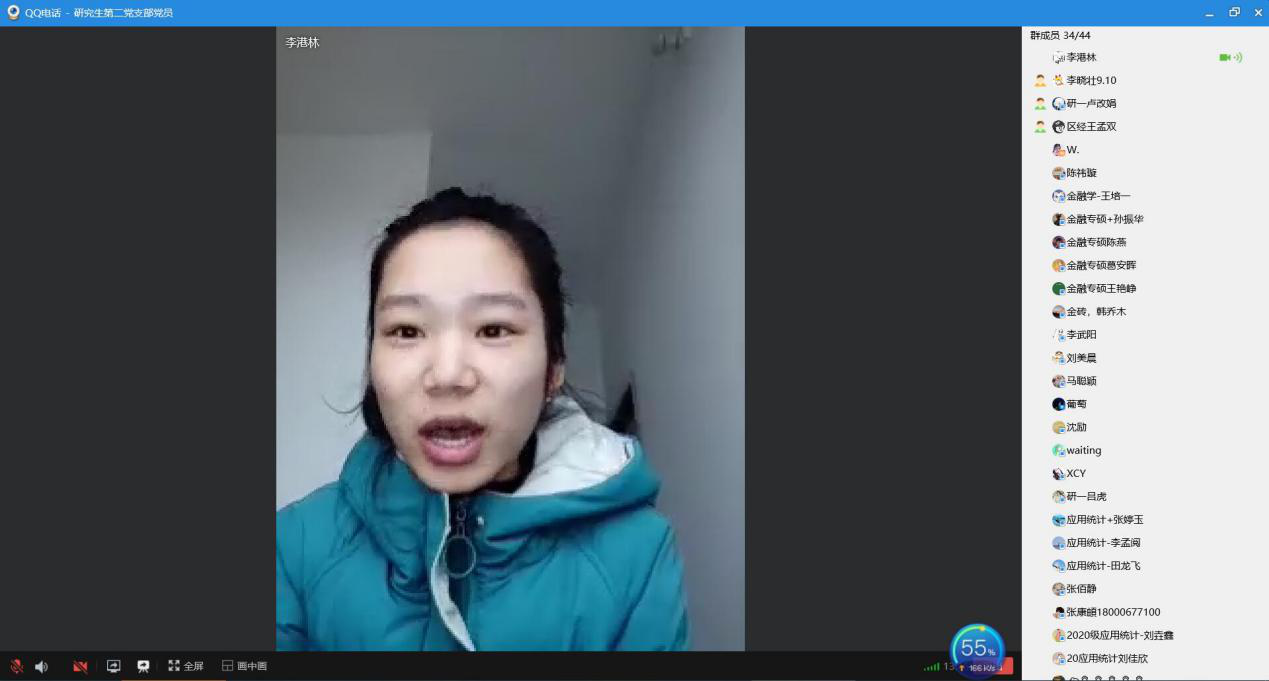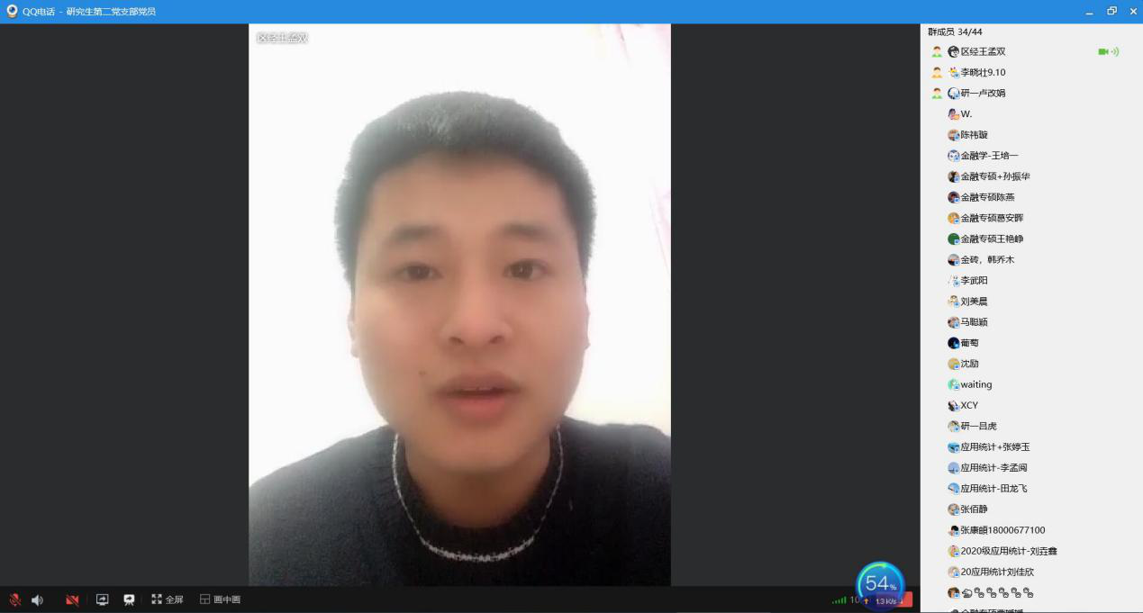 学生第二党支部线上支部会议,响应《关于在当前疫情防控工作中充分发挥基层党组织战斗堡垒作用和党员的先锋模范作用的通知》精神,党员代表李晓壮、王孟双等针对如何做好“六个带头”分别发表看法和建议做法。作为学生党员,或许不能站在一线前沿,但应起模范表率作用,主动作为,勇于担当,在国家关键时刻担起党员之责,肩负抗疫使命,以实际行动起到表率作用。