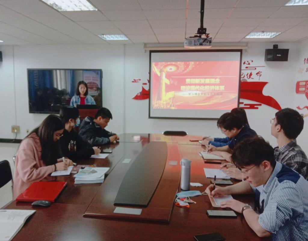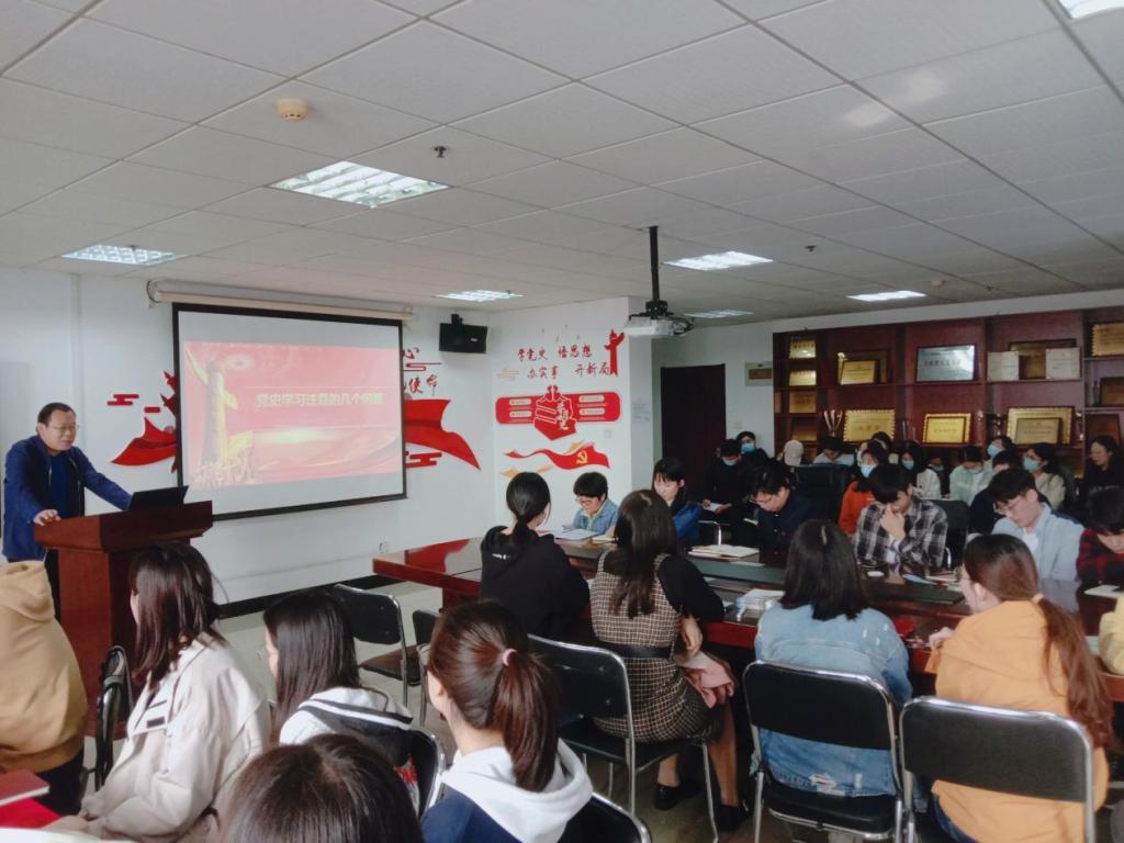 学生支部和教工支部开展“颂百年党史,悟思想伟力”经典读书班活动,研究生党员李晓壮、王新慧、沈励、张婷玉四名同志从社会、经济、文化、生态四方面对《中国共产党如何改变中国》这本书做出解读。