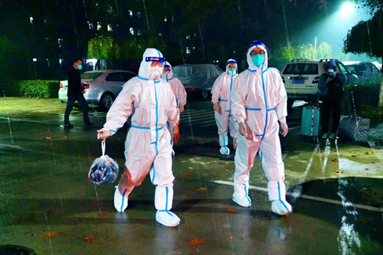 疫情就是命令,防控就是责任。支部5位党员不顾小家的困难,自9日凌晨开始陆续赶到学校,奋战在志愿服务一线,全力守护学生身心健康。从北院的学9、学10、学11,到南院的学3,都留下了他们臃肿而美丽的身影。曹楠楠、李素峰、孟亚君、郝志军等4位同志为封控隔离的学生送上一日三餐,并把每个宿舍的生活垃圾按规范清运下楼,并且帮学生从图书馆自习室把沉重的考研学习资料搬运出来,送到学生宿舍;张书慧同志化身“搬运工”,负责消杀用品、生活用品、医药用品等生活保障物资的采买、分拣、装卸与发放工作;李素峰同志在校内服务3天后远赴辛集市隔离点,为大量转运学生做好组织、协调服务工作。在每天的志愿工作结束后,他们拖着疲惫的身躯,还要完成在线教学的任务。在高强度的体力消耗和较为紧张的精神压力下,睡眠质量普遍不好,但他们仍不辞辛苦,任劳任怨,为学生提供了坚实的生活保障和心理依托。