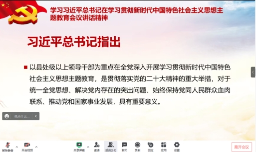 习近平总书记指出:“这次主题教育是一件事关全局的大事,时间紧、任务重、要求高。”这次主题教育关系到如何更好贯彻落实党的二十大精神,关系到如何更好推进中国式现代化这一新时代新征程党的中心任务,关系到如何更好保持解决大党独有难题的清醒和坚定。我们要坚持用习近平新时代中国特色社会主义思想凝心铸魂筑牢根本,为奋进新征程、建功新时代提供坚强有力的政治引领和政治保障,始终做到以学铸魂、以学增智、以学正风、以学促干。