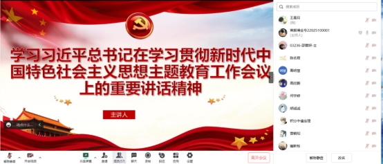 由黄毅博同志带领大家学习习近平总书记在学习贯彻习近平新时代中国特色社会主义思想主题教育工作会议上的重要讲话精神。