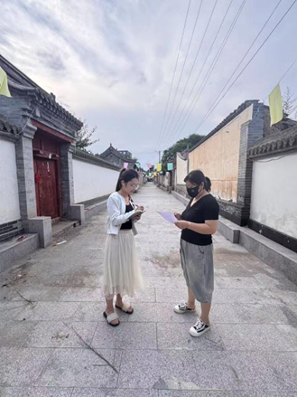 实践过程中,小分队采用“文献研究+实地考察+问卷访谈+云端协作”的多元调研方法。一位队员奔赴史家堡村实地调研,手持卷尺穿梭于古建筑间,细致测量建筑尺寸,记录结构特征,建立起包含建造年代、结构特征、损坏程度的详细档案。同时,在史家堡村的街巷间开展问卷访谈,向过往村民和游客发放调查问卷,了解他们对古建筑保护与开发的看法及诉求,“古建筑活化能否提升收入”“是否愿意参与旅游经营”等问题成为调研的重点,村民们和游客们积极分享自己的想法,不少村民表达了对通过古建筑开发增加就业机会的期待。